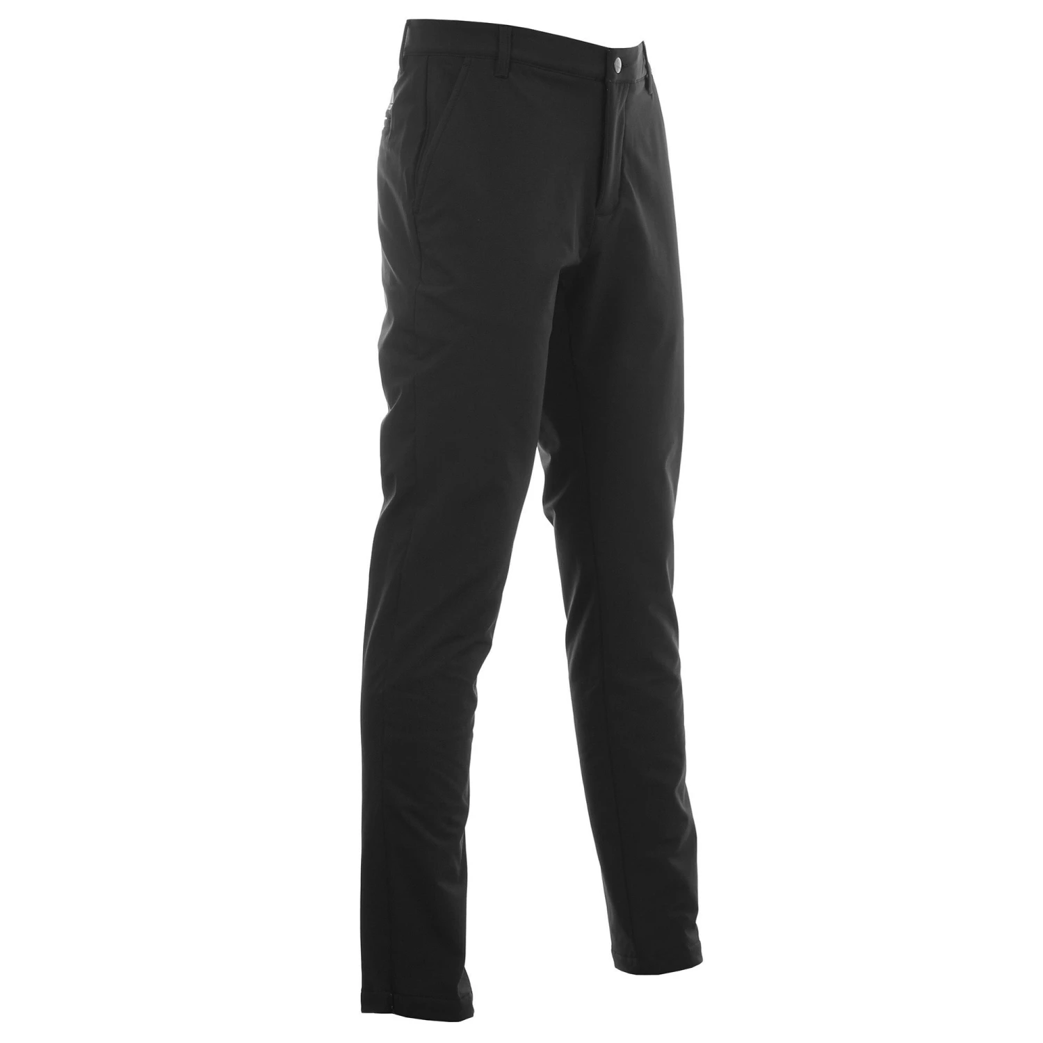 Mens Adidas Golf Frostguard Tapered Pant. New for 2020, a heavier weight, moisture wicking golf trouser, constructed with COLD.RDY technology which insulates whilst also offering wind and water resistance material as well as a brushed inner to provide additional warmth. Features two front pockets, two rear welt pockets and zippered leg openings. Finished with adidas Badge of Sport brandmark above back right pocket. 92% Polyester, 8% Elastane – Tapered fit