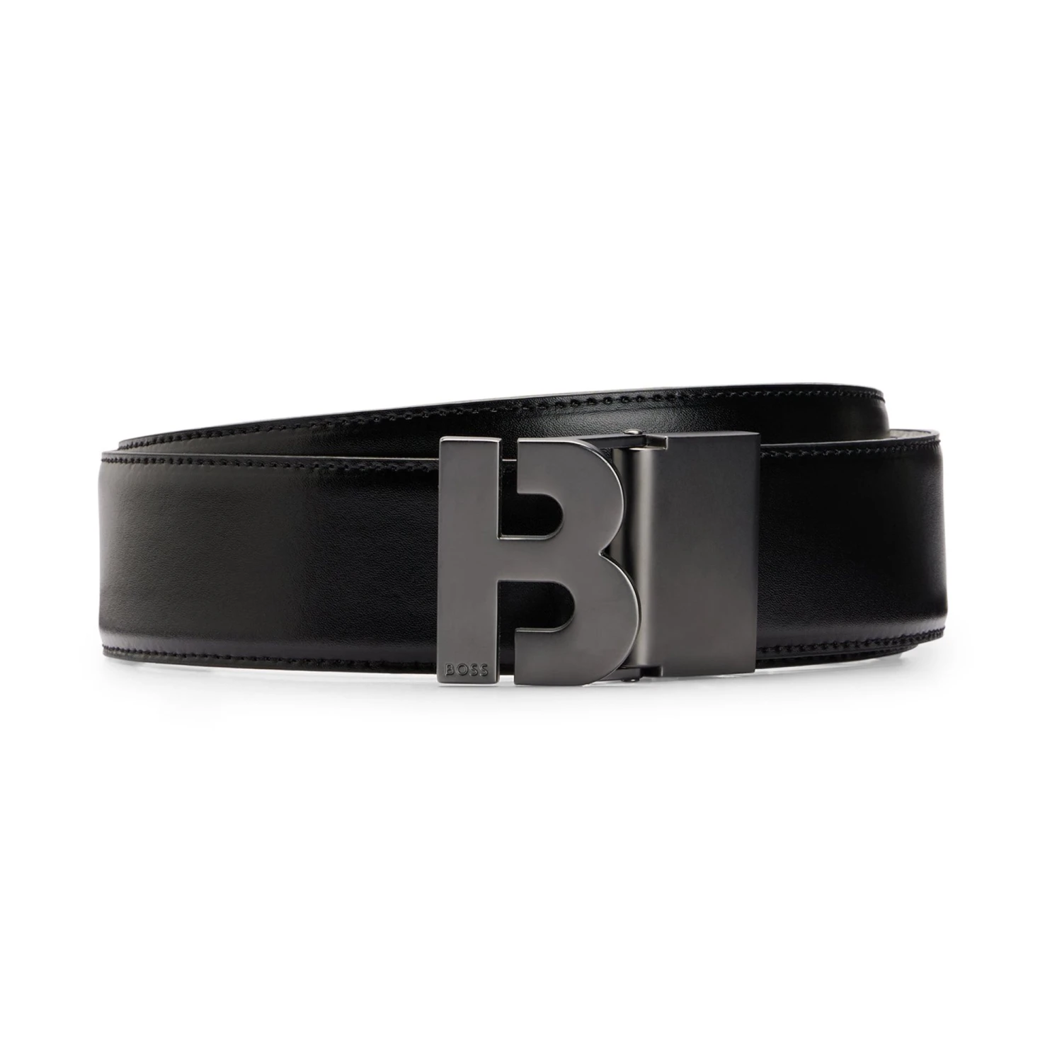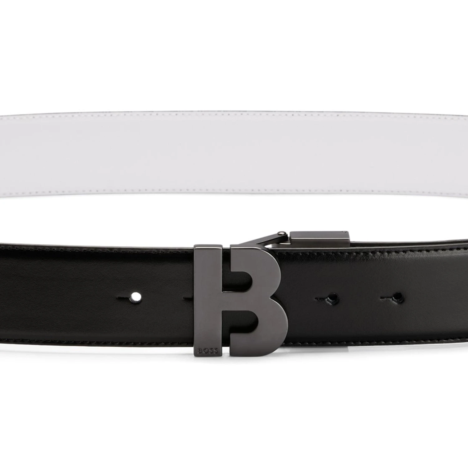 Mens BOSS B-Icon-Or Golf Reversible Belt. Add a distinctive touch to smart-casual looks with this sharp accessory. This belt is crafted from a smooth cow leather with a cut out buckle.