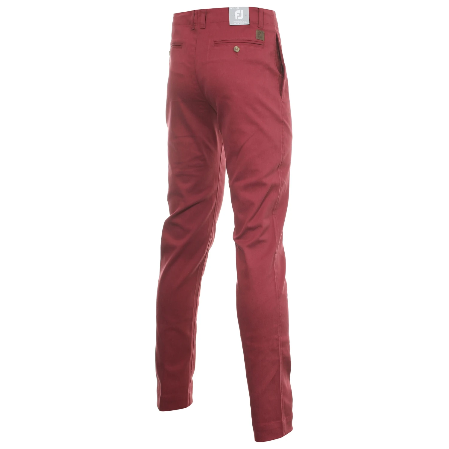 Mens FootJoy FJ Tapered Fit Chino. A 5 pocket, slim fitting chino, with two front pockets, two rear pockets and additional coin pocket. Made in a cotton blend fabric to ensure a soft handfeel whilst also having the stretch, moisture movement and breathability of performance fabrics.