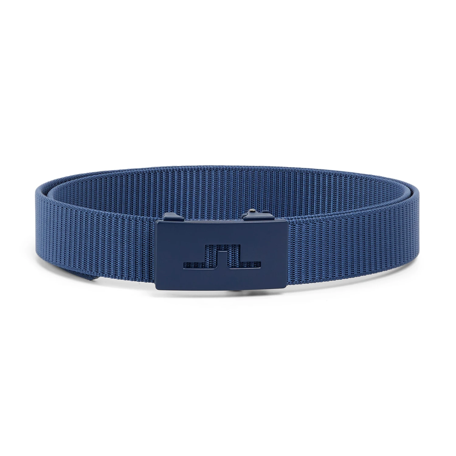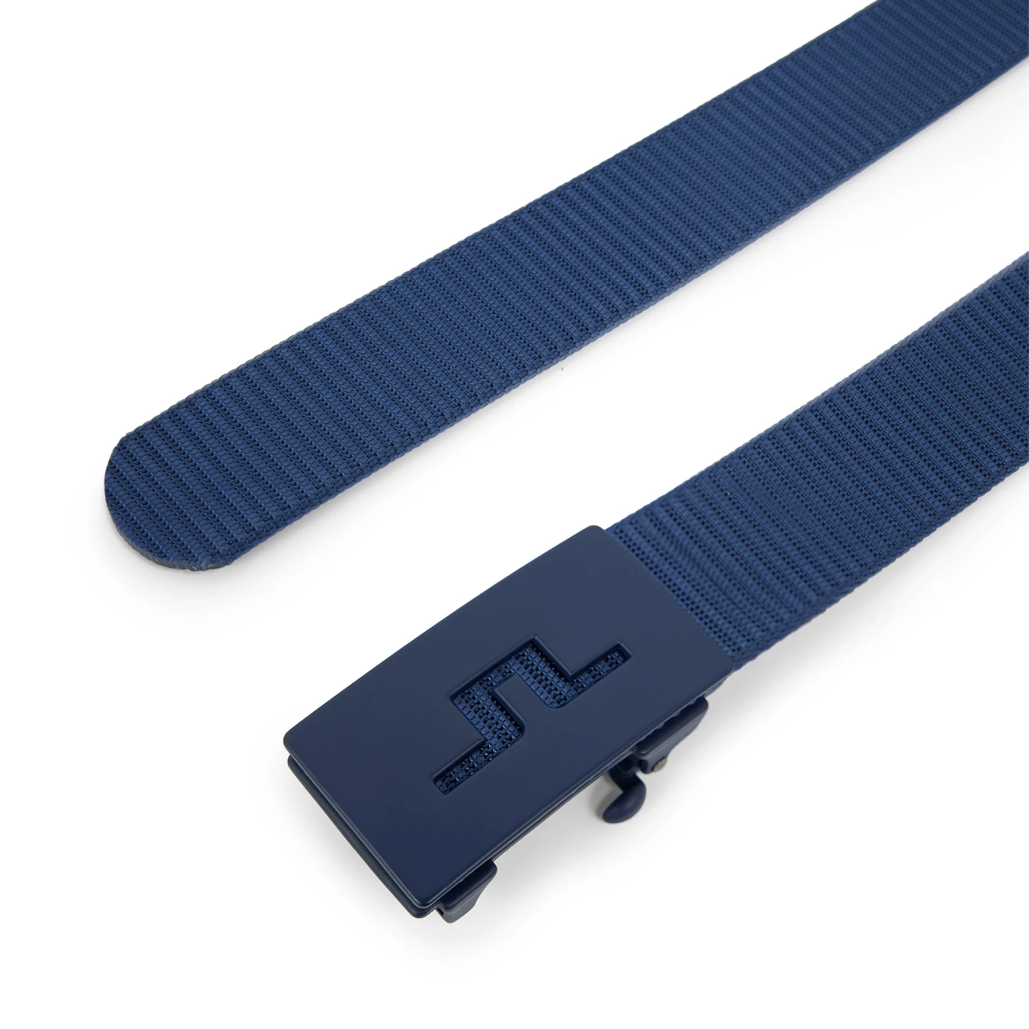 J.Lindeberg Golf Roy Belt. Part of the Cruise golf collection, a sleek webbing belt constructed in a stretch, nylon fabric with a new mechanical open and close click function.