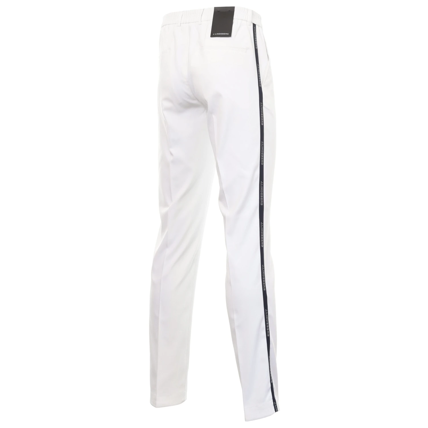 Mens J.Lindeberg Golf Stuart Stripe Pant. Updated for Fall 2022, a lightweight trouser constructed in a stretch fabric with a subtle twill structure. Features a tape side stripe with J.Lindeberg wordmark for a clean yet fashionable look.