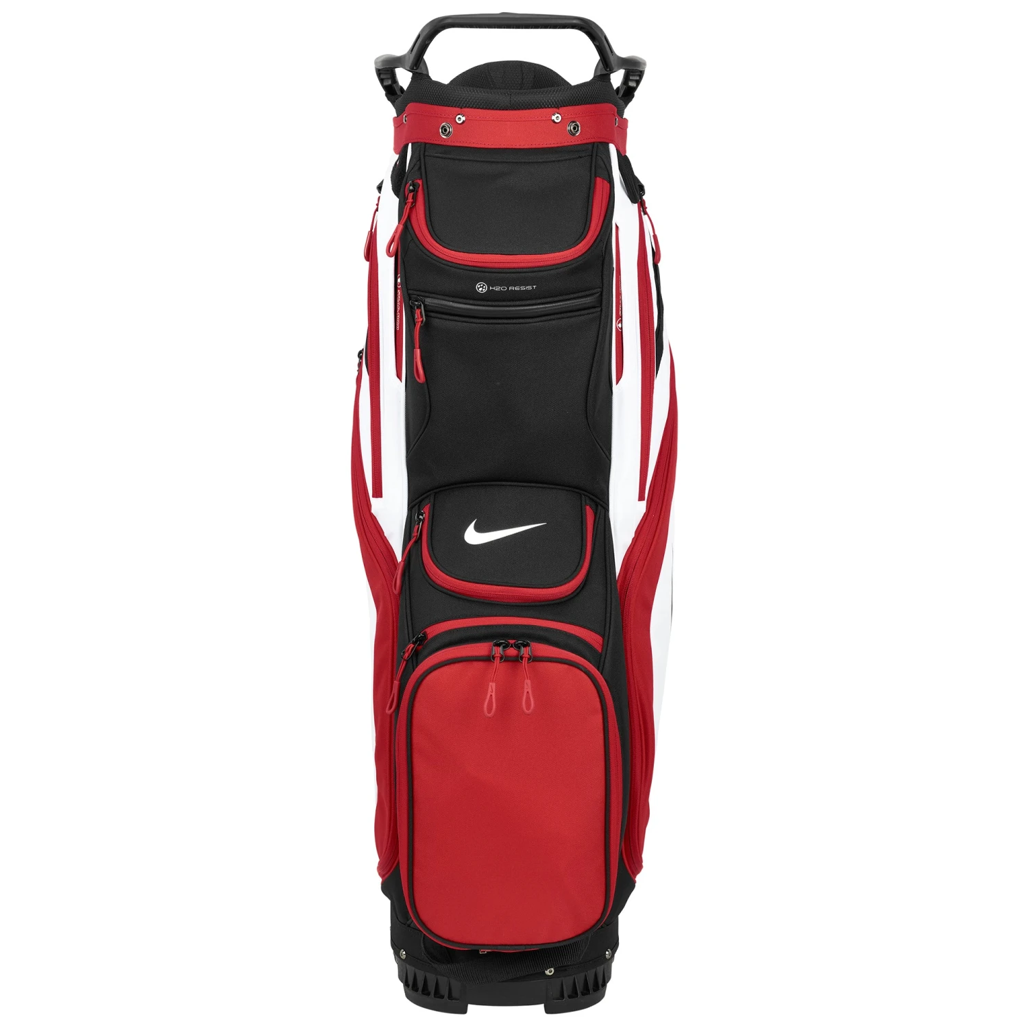 Nike Golf Performance Cart Bag. This durable, lightweight design has a strap-through design that makes it easy to secure to your cart. A 14-way, full-length divider helps you stay organised, while a water-resistant rain hood offers coverage for your clubs in wet weather.