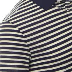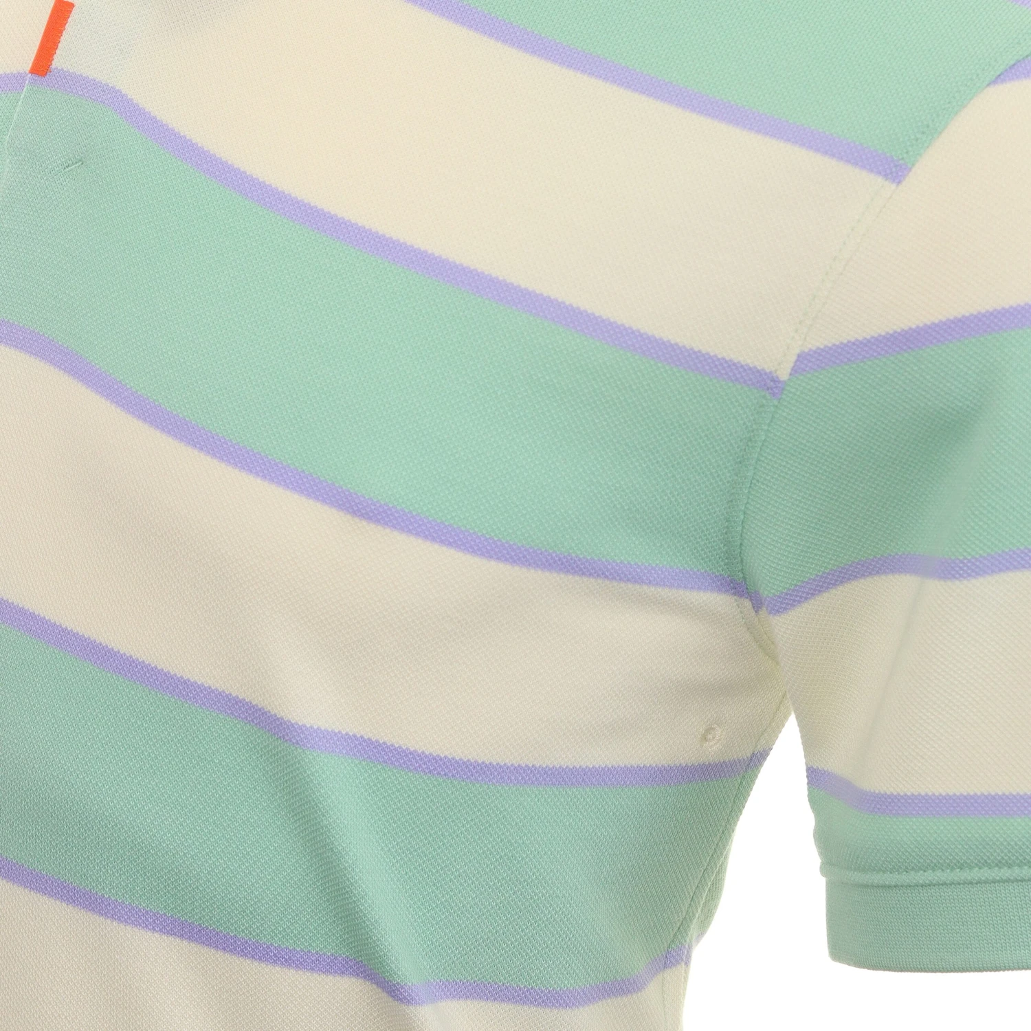 Mens Nike Golf The Rugby Stripe Polo Shirt. New for Fall 2022, a rugby top inspired shirt constructed using a stretch, cotton blend, pique fabric, to produce a highly mobile and comfortable garment. Constructed from Nike Dry fabric, Dri-FIT technology moves moisture away from the body, regulates body temperature and keeps you cool and dry. Features a drop tail hem and hem vents which allow you to wear the polo untucked for a more casual, street-ready look.