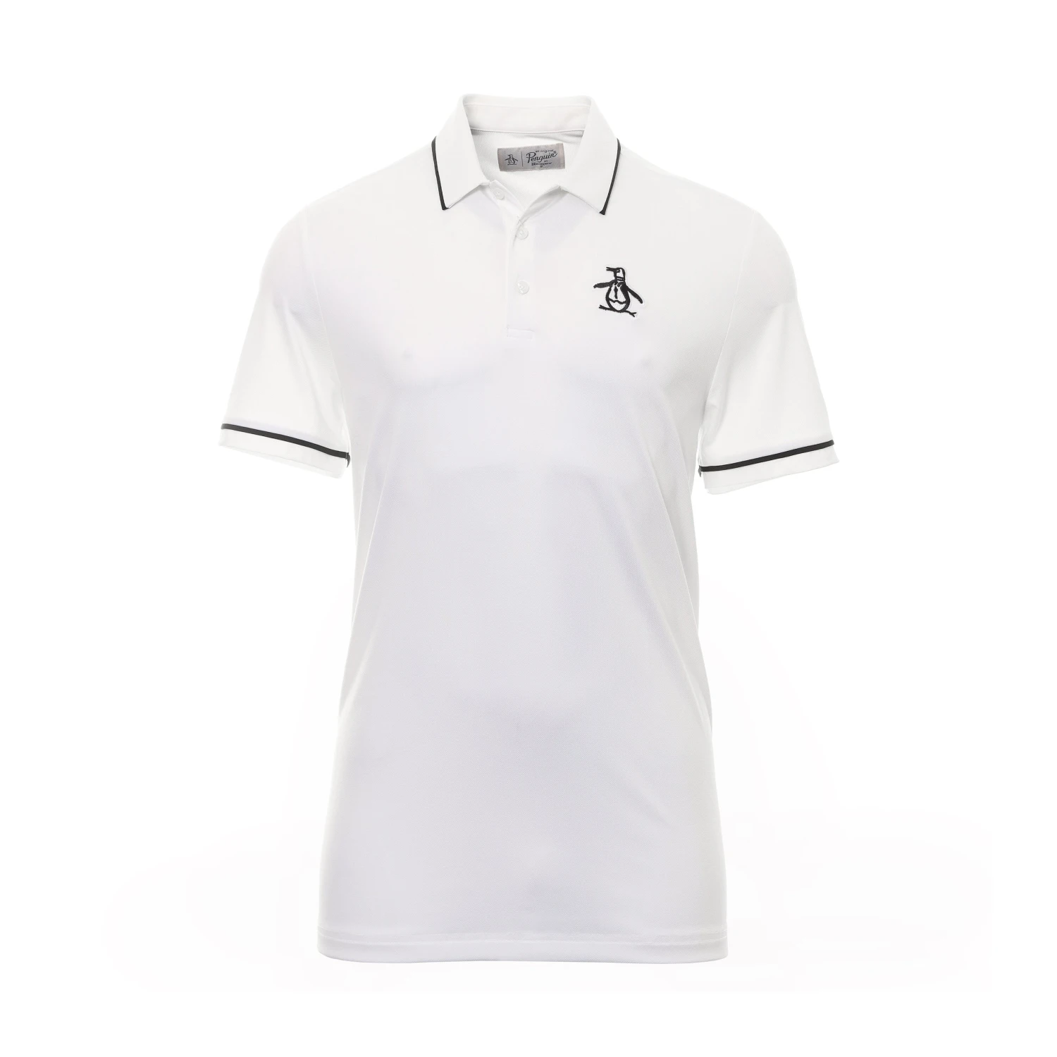 Mens Original Penguin Golf Heritage Polo Shirt. A 3-button placket, double knit fabric polo shirt. Constructed from a moisture wicking fabric; OPG moisture management system, will keep you fresh and dry throughout your round. Stretch construction fabric adds comfort for a friction free swing.