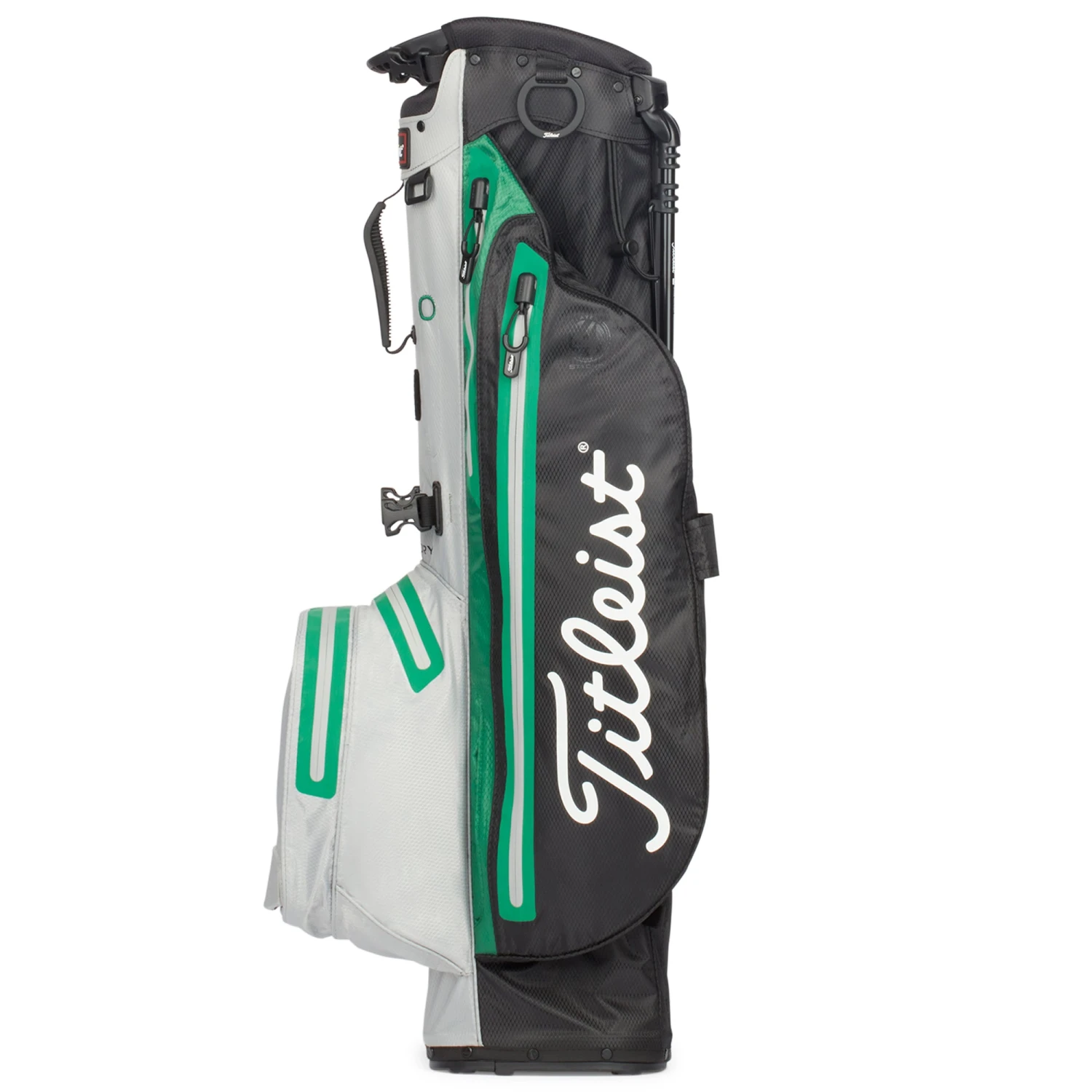 Titleist Players 4 StaDry Stand Bag. The new Titleist Players 4 StaDry Stand Bag – A premium and functional stand bag. Features include a 4 way top with integrated handles, high grade aluminium legs and advanced hinged bottom for stability and durability. This bag includes a new, premium, double strap for cushioning and lasting comfort. This 7 pocket design includes a rain hood. Constructed in durable materials and finished with Titleist branding. Weight – 1.7 KG’s.