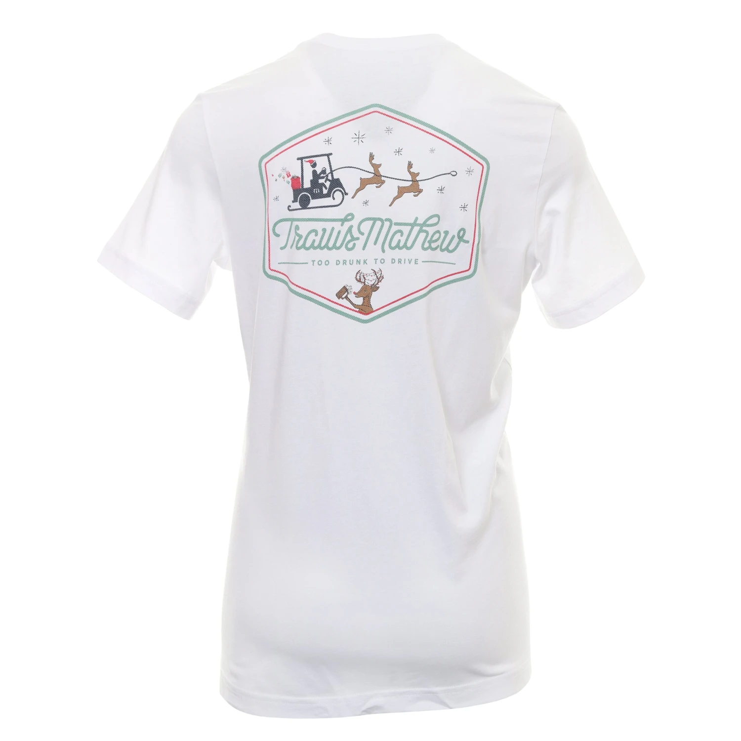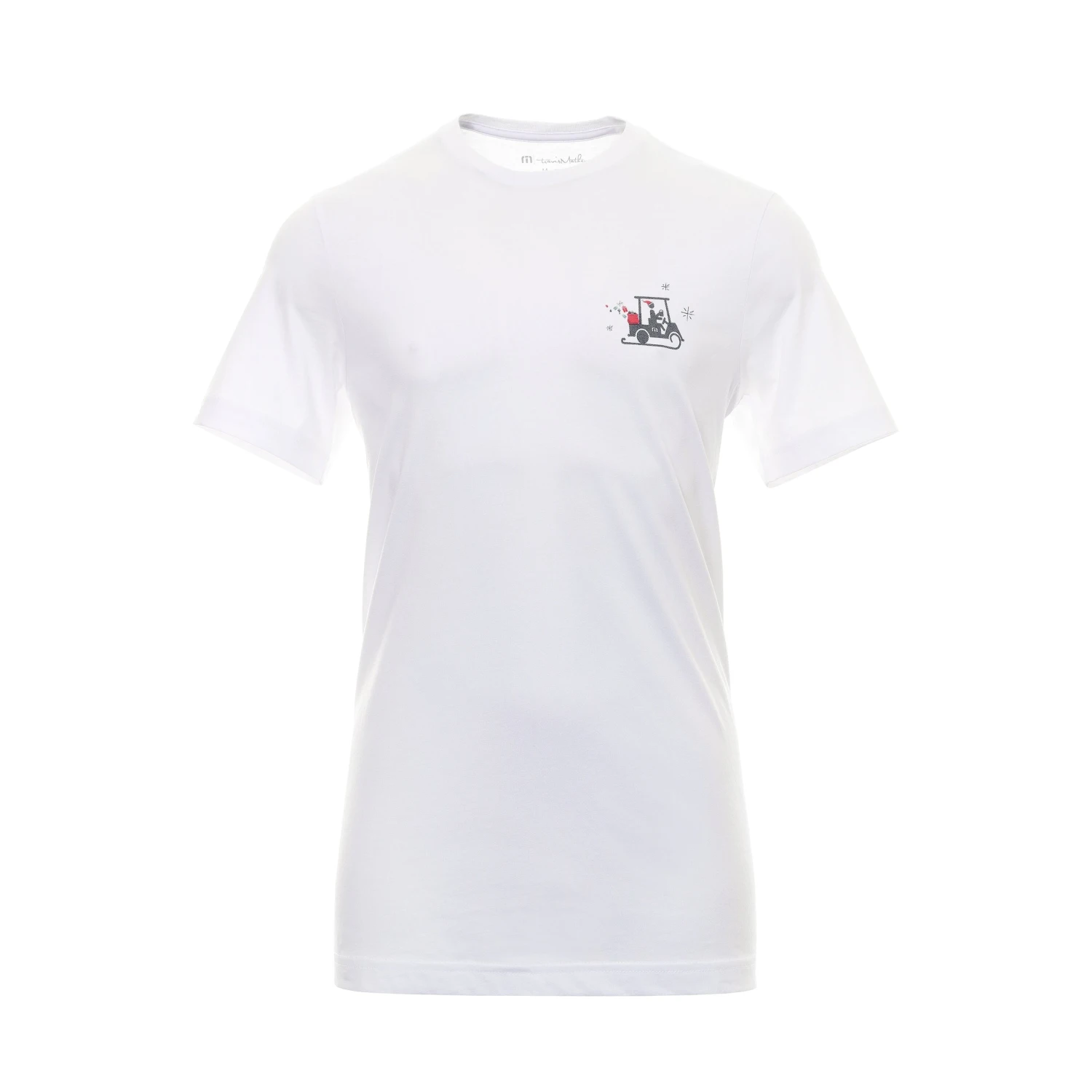 Mens TravisMathew Danisher Tee Shirt. There’s very little doubt whether you’re on the naughty or nice list. But even if Santa doesn’t like you anymore, we got you a little something in the form of our DANISHER t-shirt, featuring a festive take on our iconic golf cart icon.